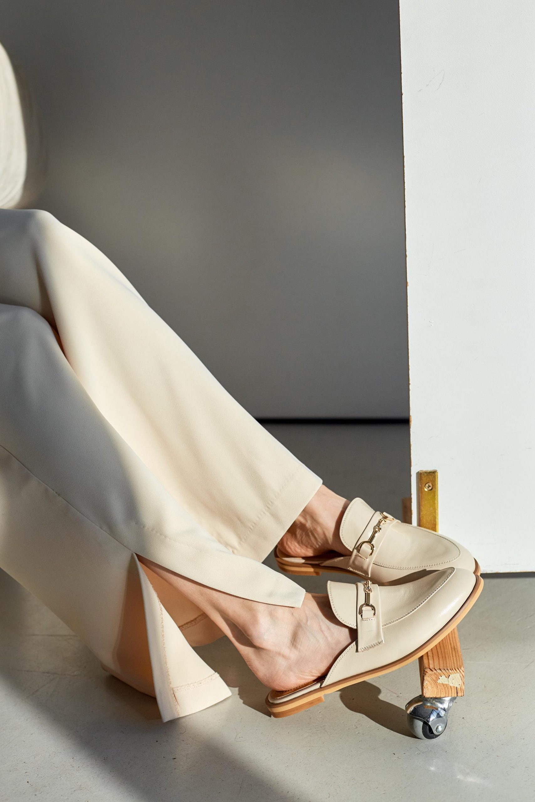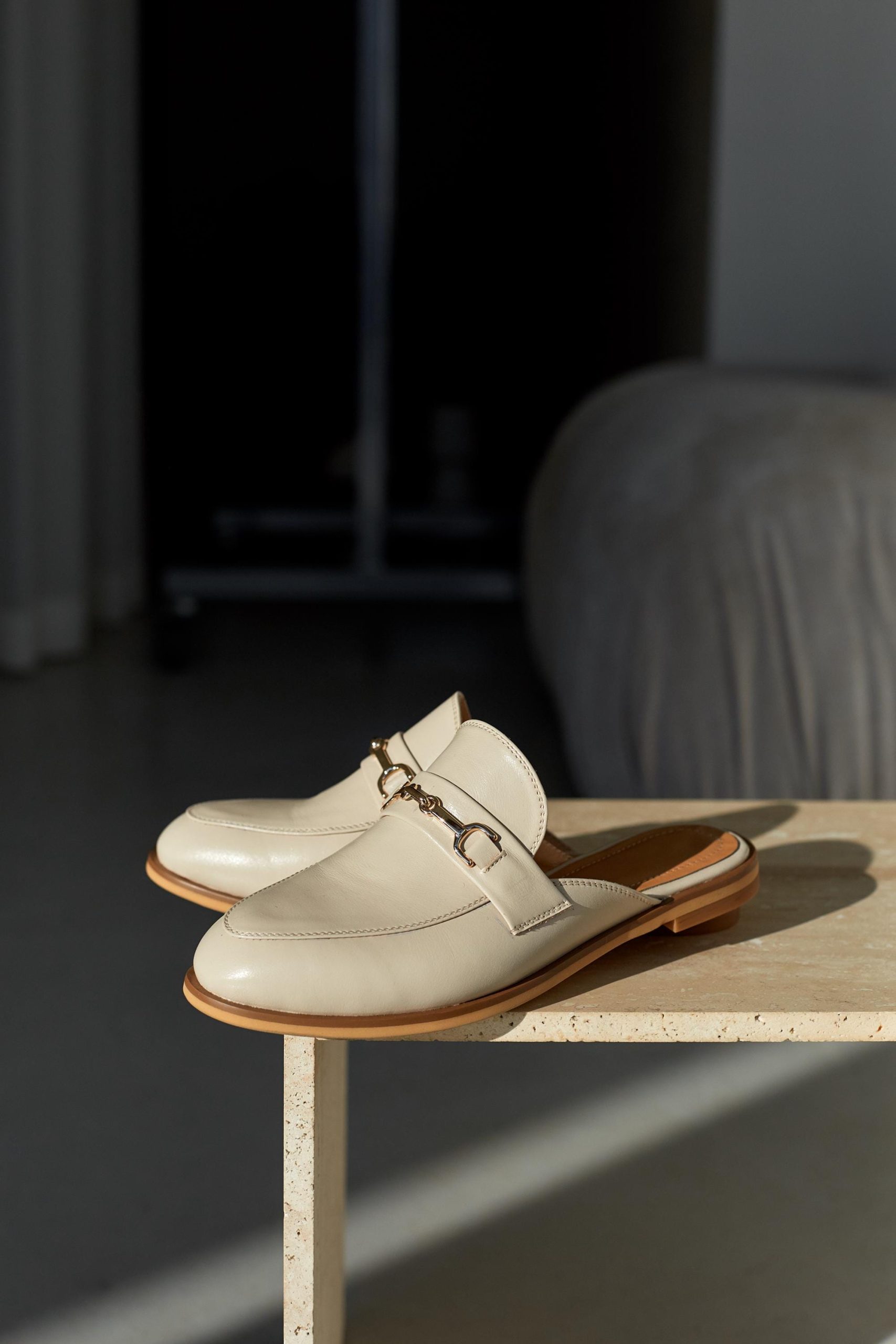 Beige Leather Women’s Mules Backless Flat Shoes Casual